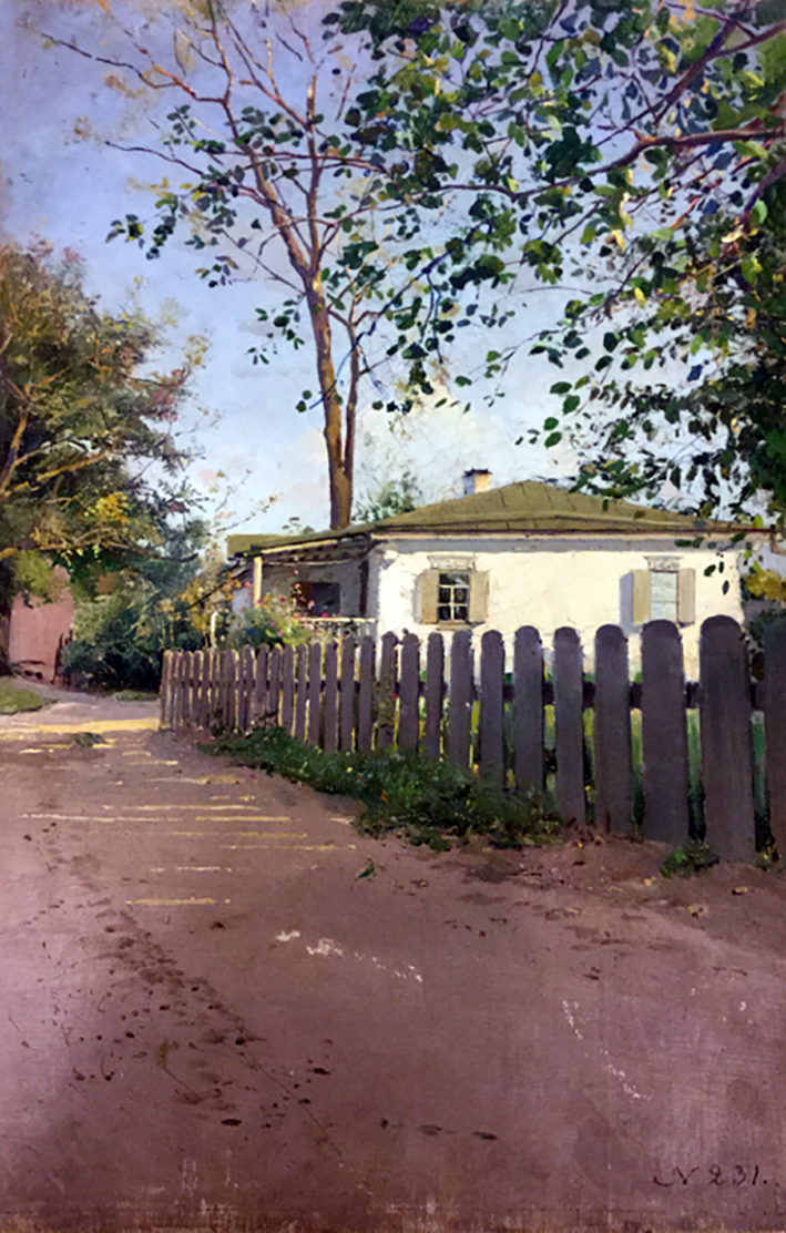 Художник нерідко малював батьківський маєток, але на картини жодного разу не потрапив фасад будинку з вулиці. Одну з його робіт, «Мій дворик», часто виставляли у Харкові. Місцева публіка була від неї в захваті.