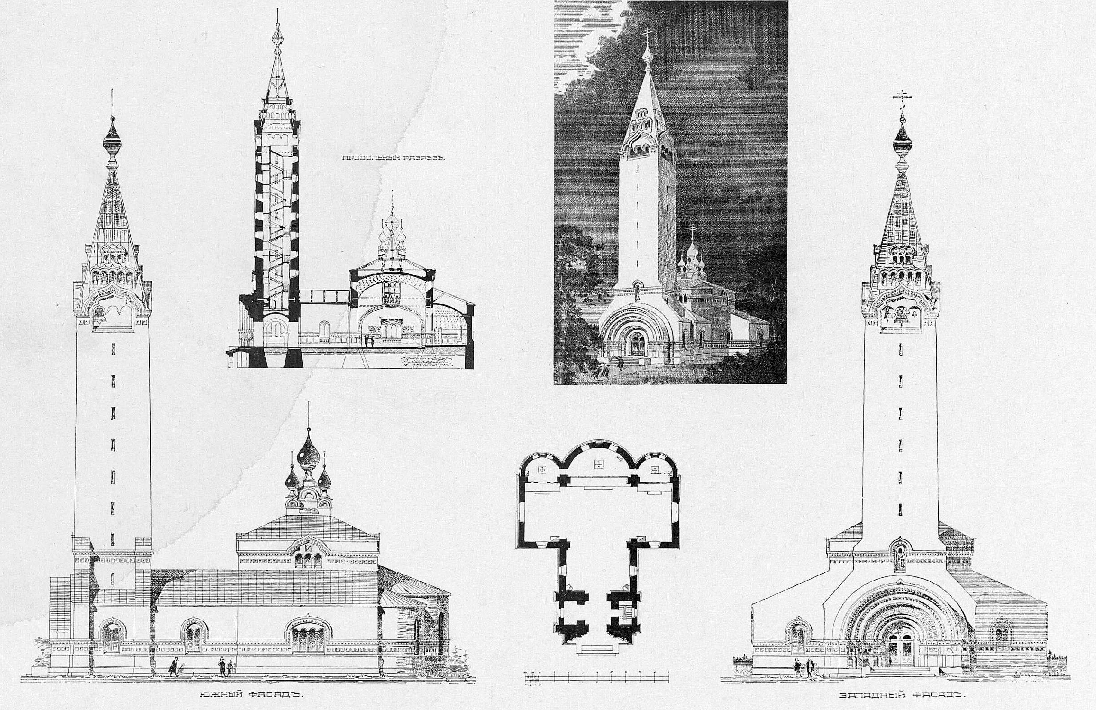 Проект церкви в селе Верхние Колчи академика архитектуры Р. Р. Марфельда, 1916 год.